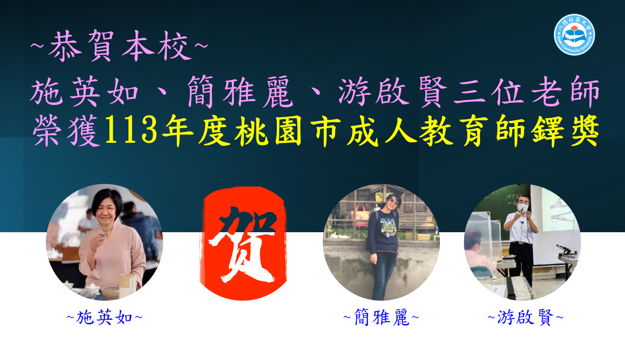 2024/8/22113年度桃園市社區大學成人教育師鐸獎名單(八德社大)