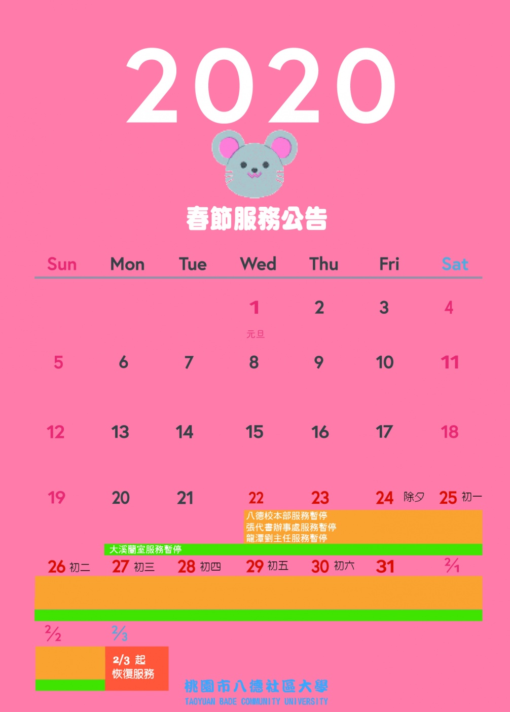 八德社大預祝大家春節愉快,鼠年行大運