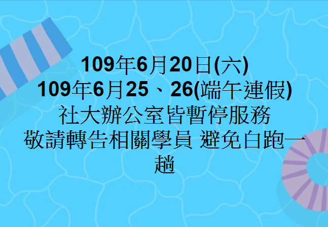 2020/6/196/20(六)社大辦公室暫停服務公告