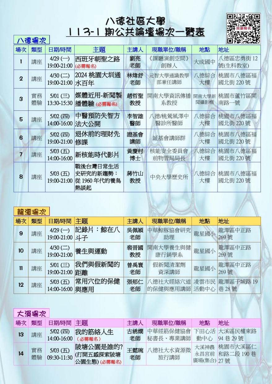 2024/4/24113-1期(春季班)公民週場次一覽表