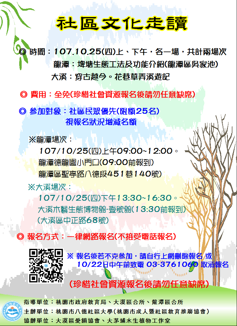 社區文化走讀 免費導覽活動,歡迎社區民眾參與