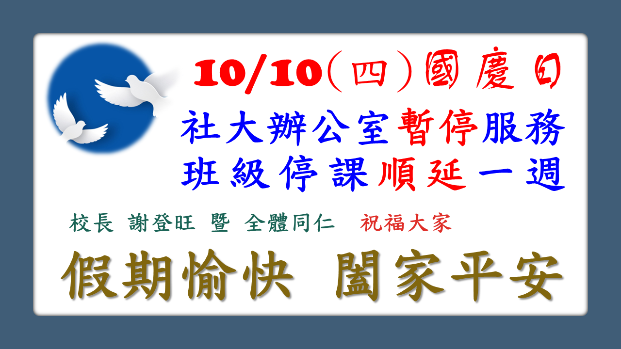 2024/10/910/10(四)國慶日辦公室暫停服務公告