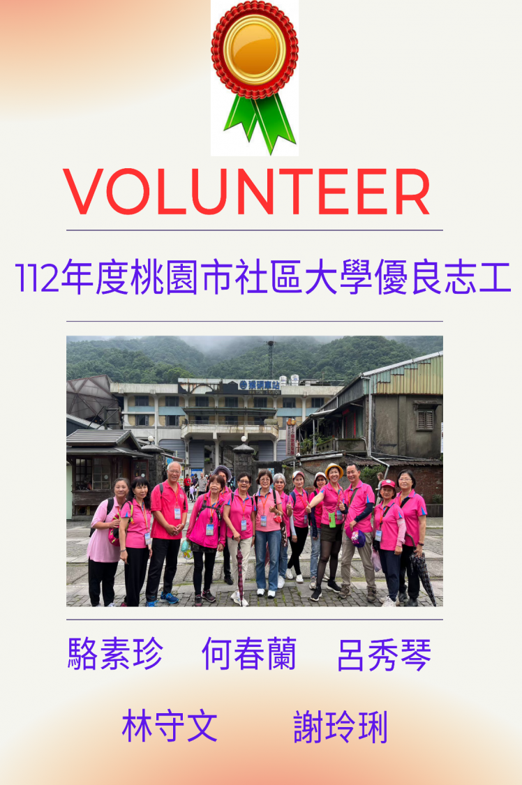 2023/8/9112年度桃園市社區大學優良志工獎獲獎名單