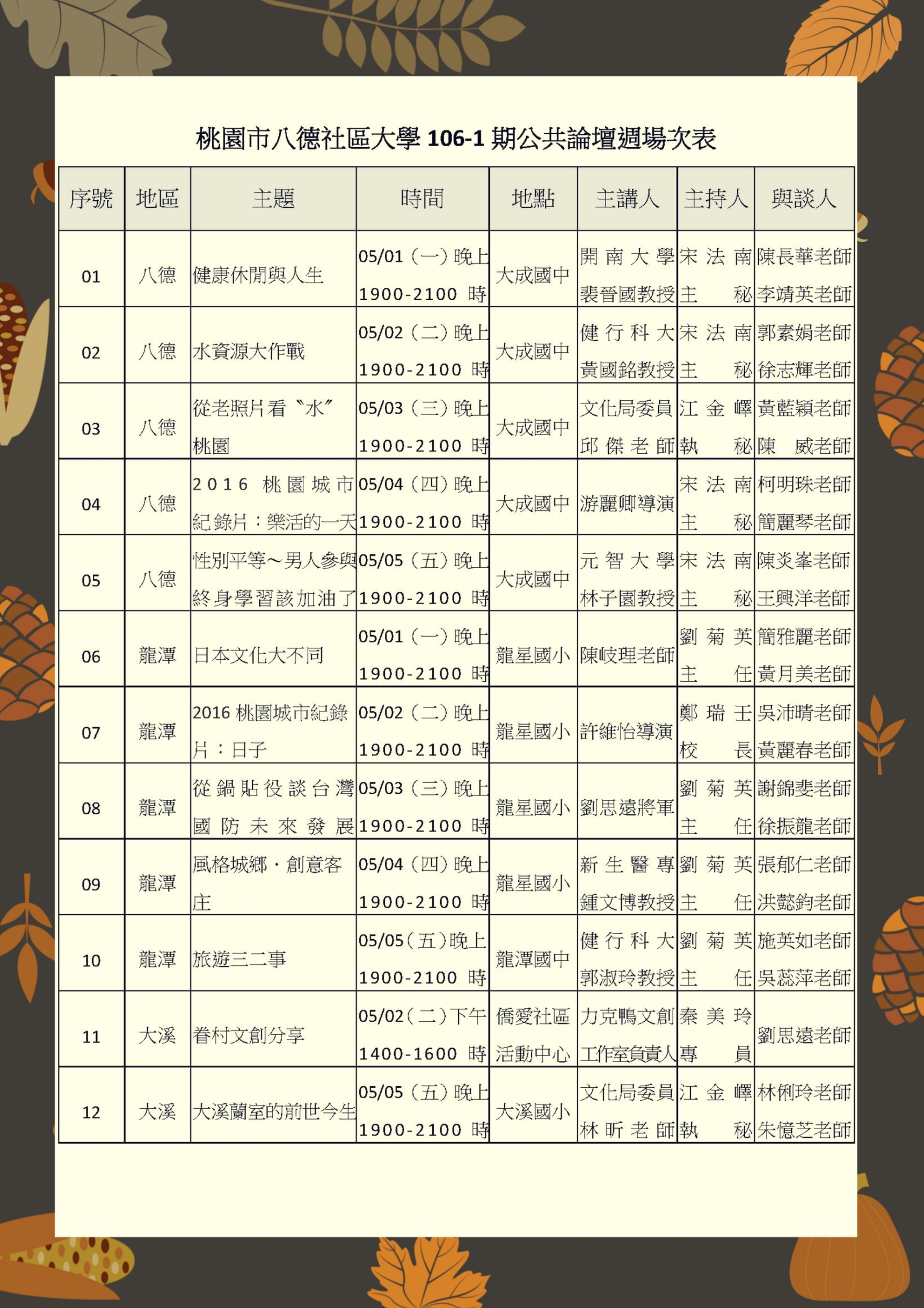 2017/4/17八德社大106年春季班公共論譠場次公告