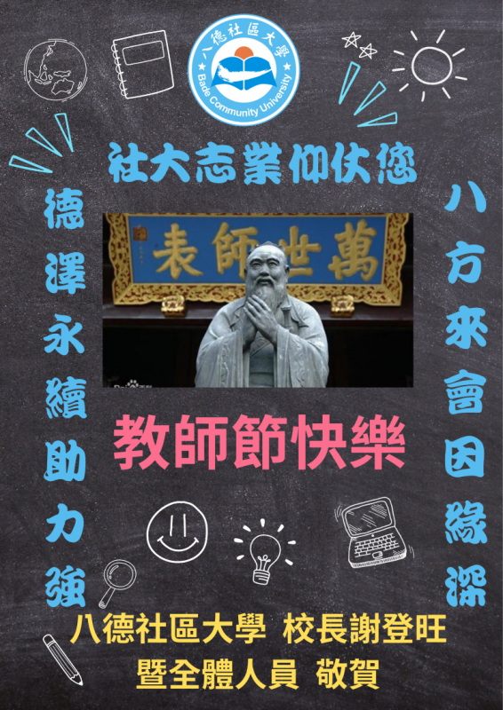 9/27(日)至9/29(一)教師節連續假期 社大辦公室及代辦處暫停服務,