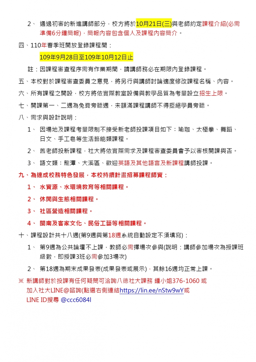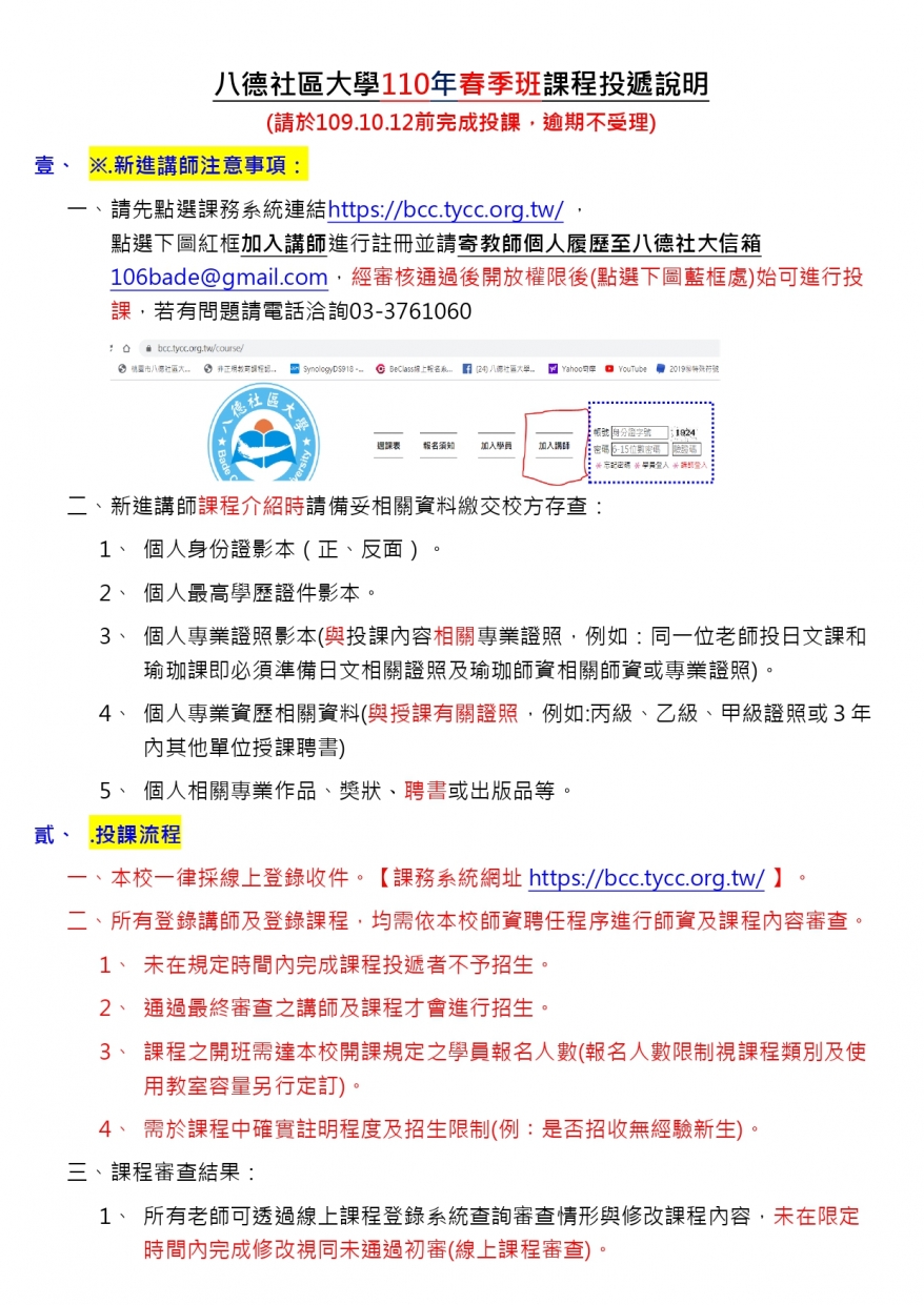 3.5 新講師投課問題請來電03-3761060洽詢課務;舊講師請洽詢各區承辦人 或