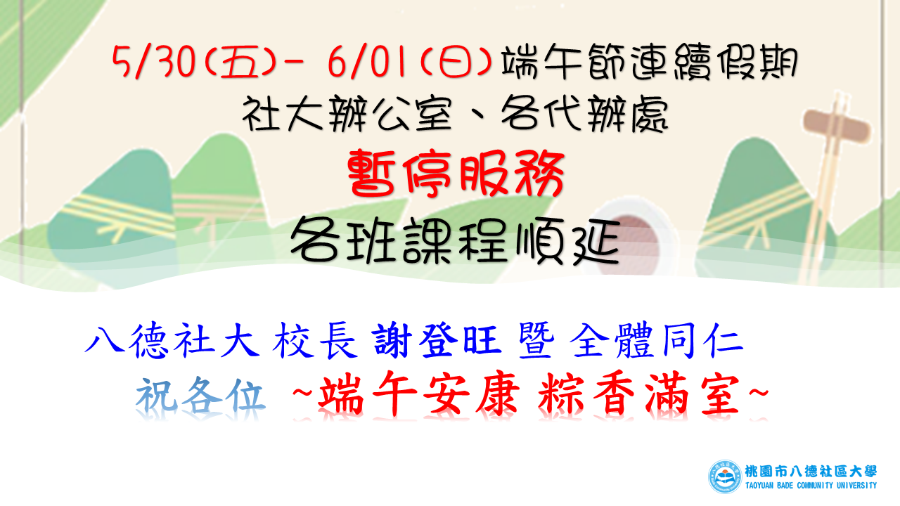 2025/5/295/30-6/01端午節連續假期暫停服務公告