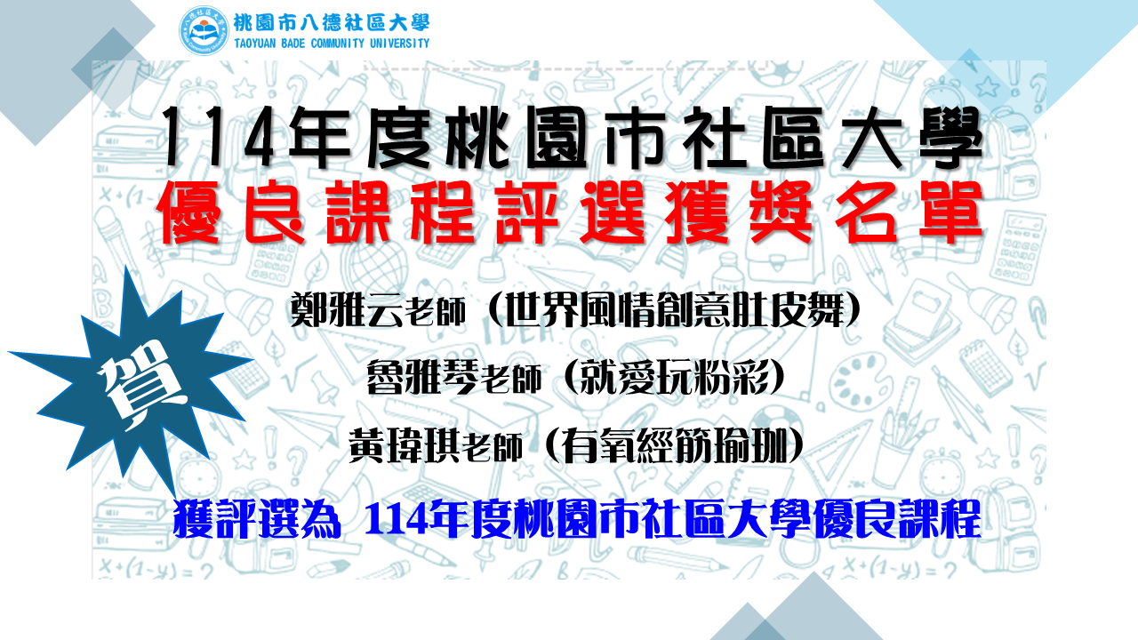 2025/8/28114年度桃園市社區大學優良課程評選獲獎名單(八德社大)