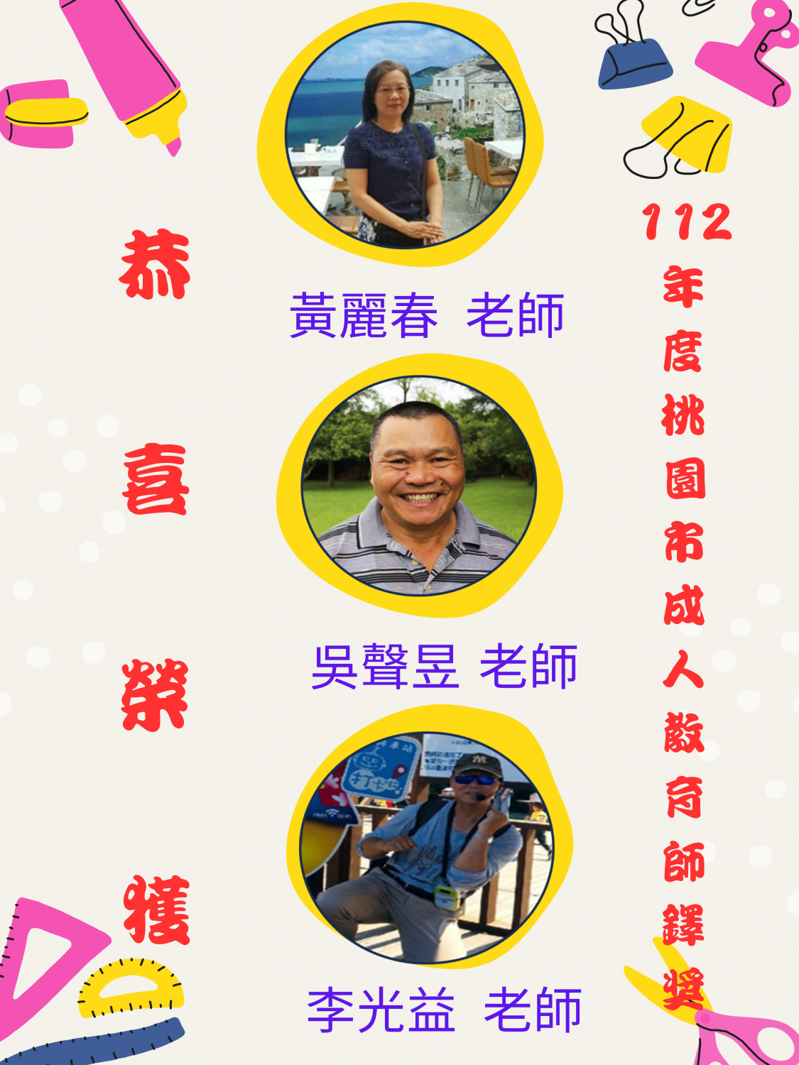 2023/8/17112年度桃園市成人教育師鐸獎得獎名單