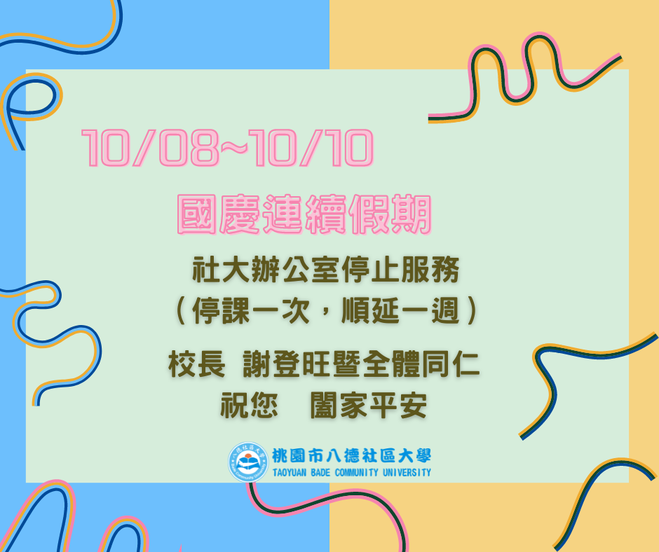 2022/10/710/8-10/10 國慶連續假期 社大辦公室暫停服務
