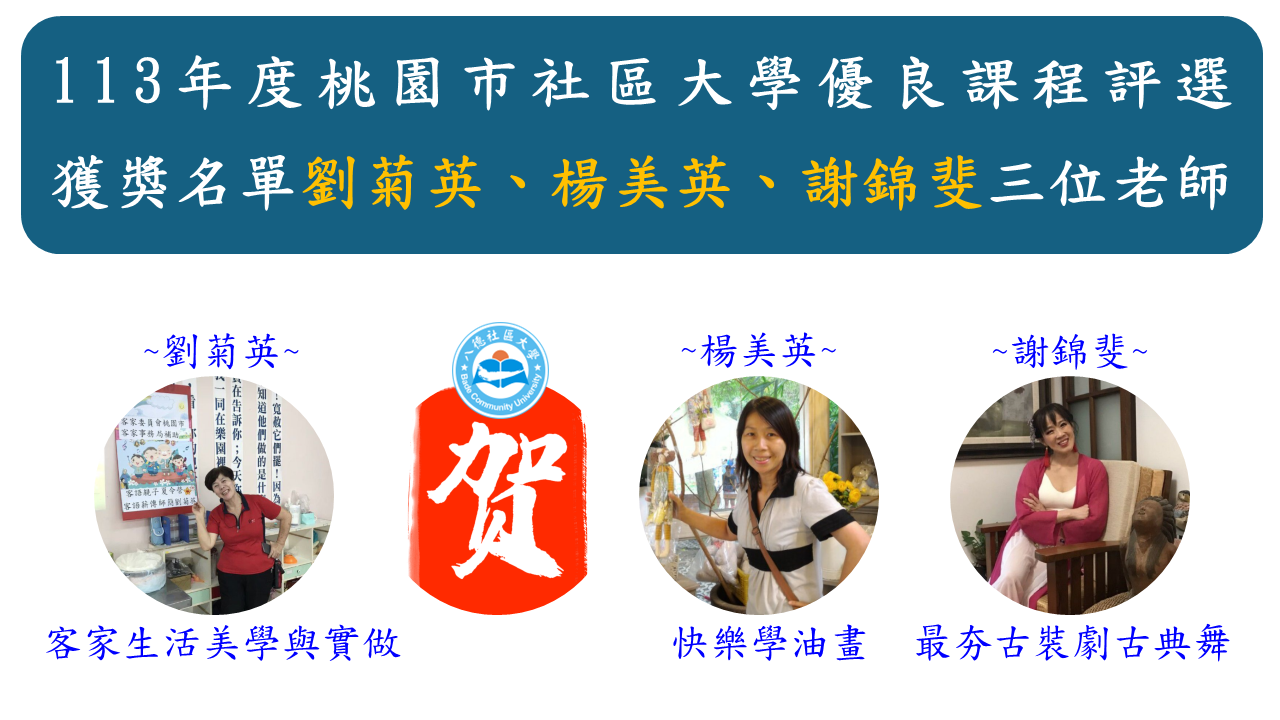 2024/8/29113年度桃園市社區大學優良課程評選獲獎名單