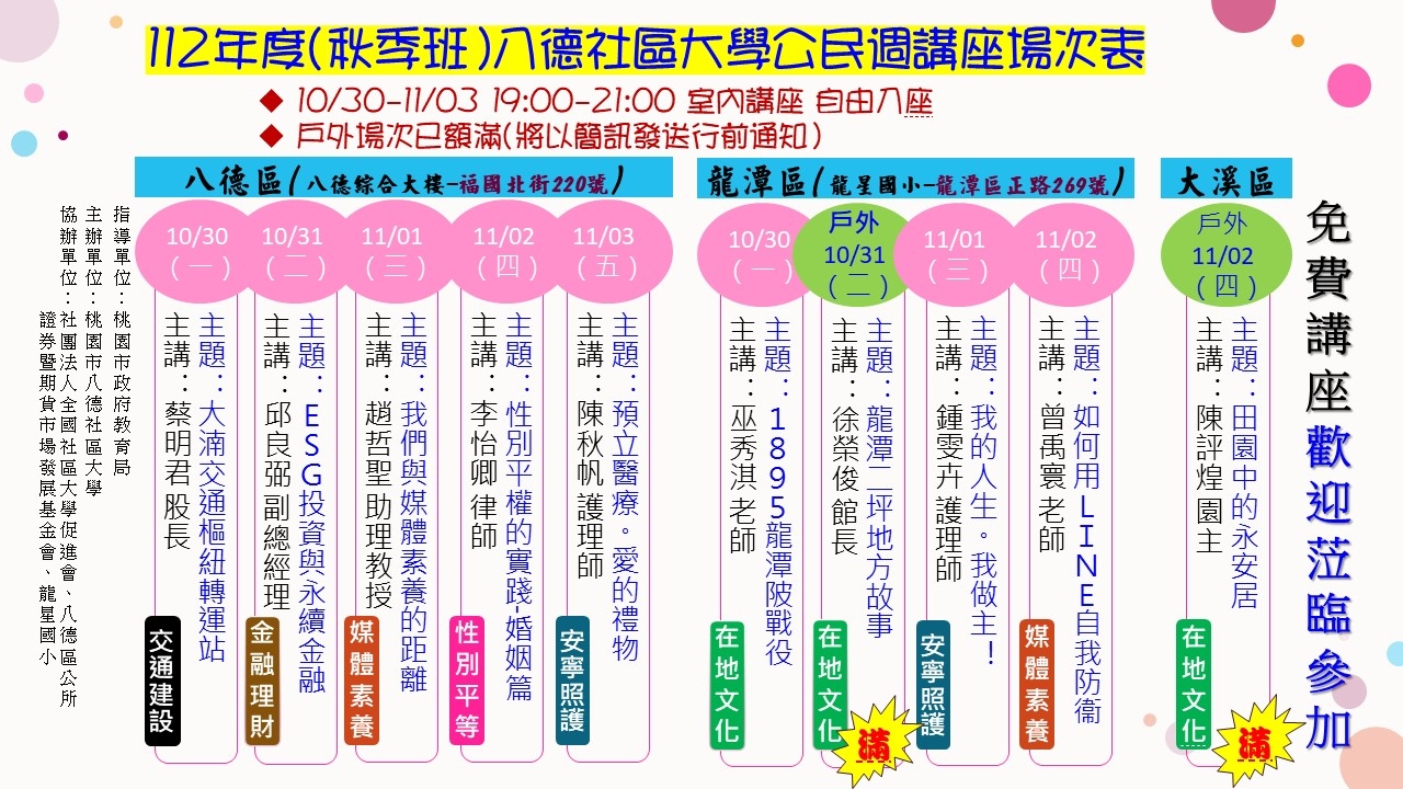 112年度(秋季班)八德社區大學公民週講座